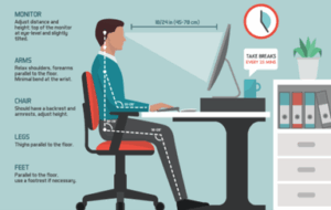 - Desk: Set your desk height so your elbows remain at 90–100 degrees when typing. Wrists should stay in a neutral (straight) position.